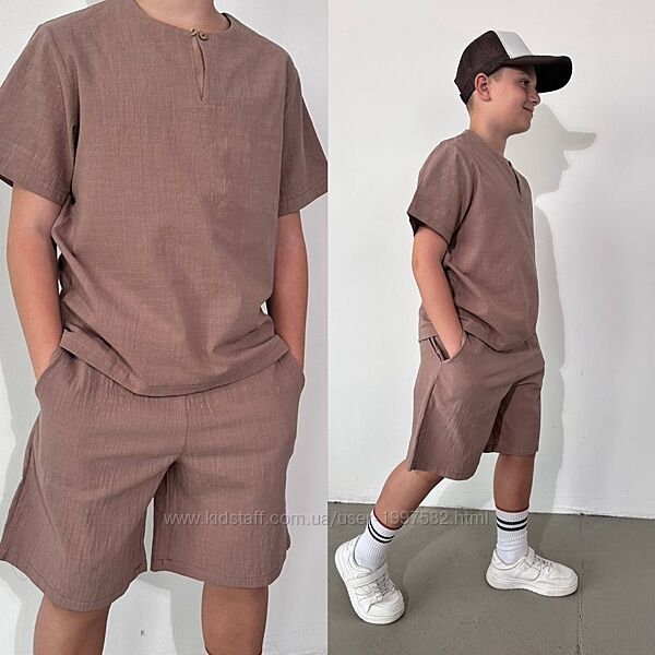 Підлітковий літній костюм лляний для хлопчика дитячий легкий з шортами L199