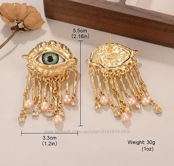 Эти красивые серьги в виде глаза пополнит коллекцию любой творческой личности, ценящей необычность и экстравагантность.Размер: 5,5 х 3,5 см
