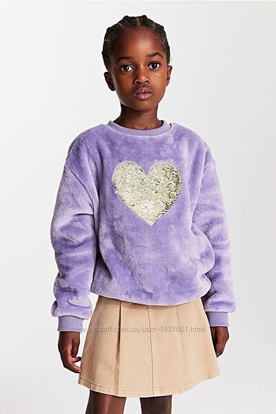 Толстовка велюрова H&M з реверсивним паєтками спереду. Круглий виріз, спущені плечі.Розмір EUR 104/ UK 3-4 Y