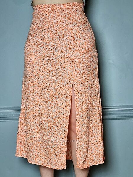 Квіткова помаранчева спідниця міді з розрізомБренд: H&M