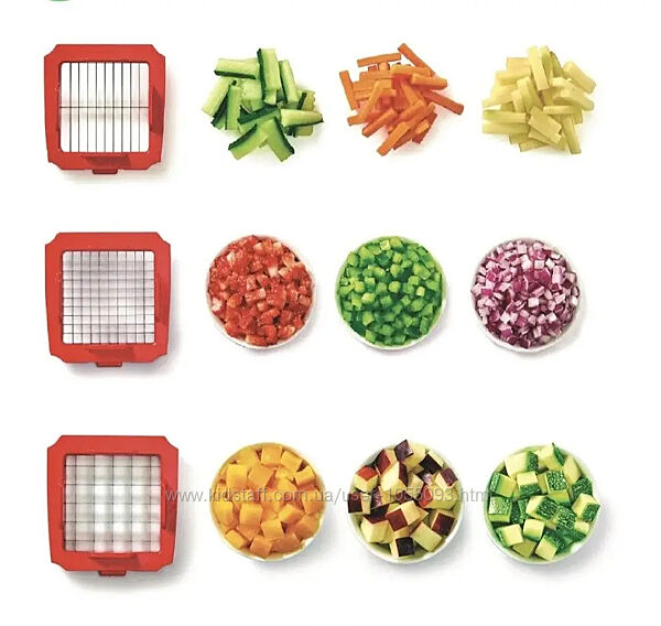 Нарізайте овочі для салатів, омлетів, рагу, супів, заготовок, картопля для приготування картоплі фрі, фрукти та ягоди для салатів та компотів.