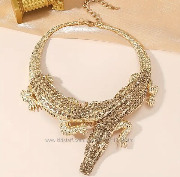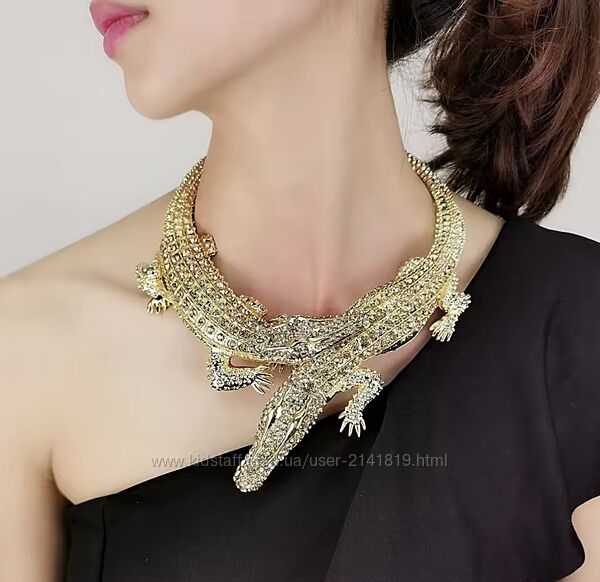 Подробное описание: Шикарное колье крокодилы золото, массивное колье с двумя крокодилами