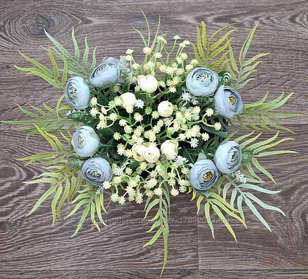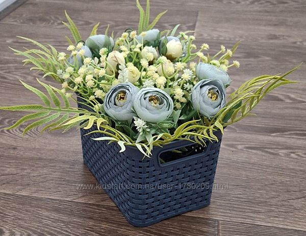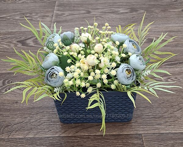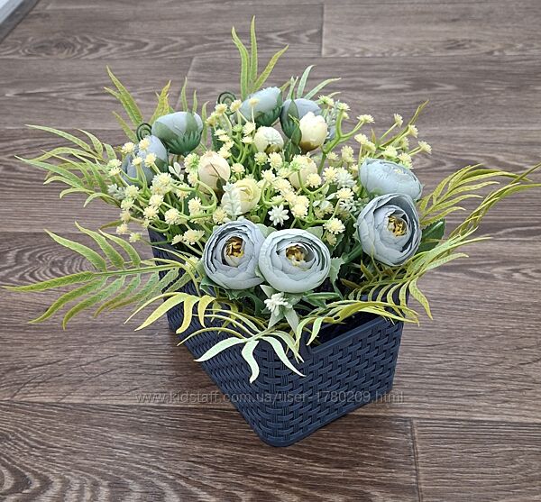 Композиція з штучних квітів в пластіковому кашпо