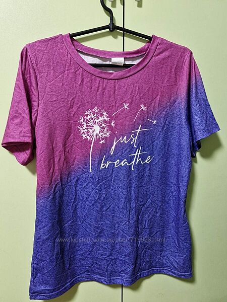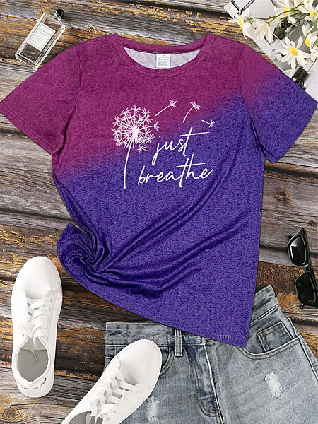 Подробное описание: Футболка з принтом just breathe та кульбабою