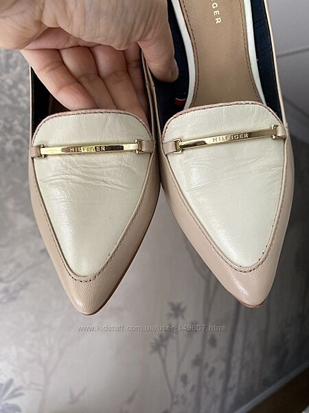 Продам свої улюблені туфлі лодочки від Tommy HilfigerВиготовлені з натуральної шкіри, всередині обшиті тканиною , устілка-натуральна шкіра, в районі пʼятки-натуральна замша.