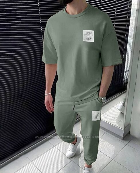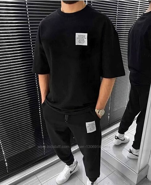 Футболка з принтом на грудях+штани з еластичним поясом зі шнурком,бічними кишенями,принтом та манжетами на резинці.