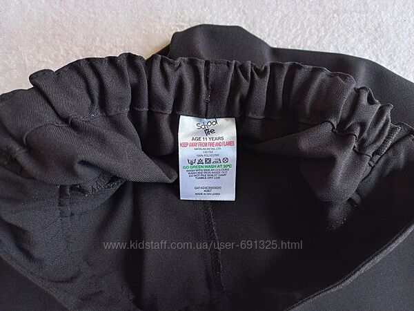 Пропоную чорні класичні/шкільні штани на дівчинку, від Matalan. Матеріал - костюмна брючна тканина 100% поліестр, тонкий, легкий, не тягнеться. Ширинки на блискавці немає. Вживані мало, акуратно, стан відмінний, без дефектів.Розмір на 11 років. Довжина з бокового шва 88 см, з внутрішнього шва 68 см, ширина талії 28-42