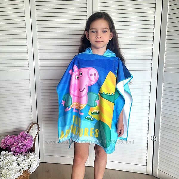 Подробное описание: Дитячий рушник-пончо з капюшоном для дівчинки