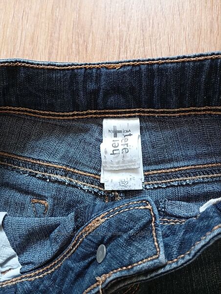 Продам джинсы C&A Here There размер 152 из стрейчевого материала, б/у в хорошем состоянии. Хорошо тянутся, удобная посадка, в поясе есть утяжка - резинка с пуговицами.
