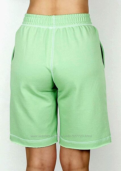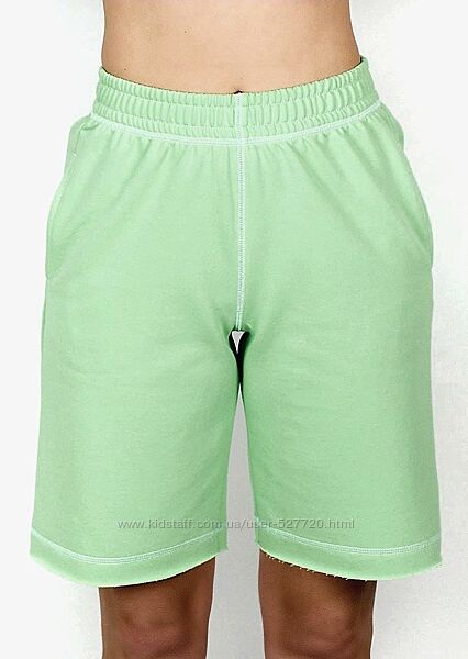 наявність уточнюйте будь ласкаЖіночі трикотажні шорти. Модель середньої довжини із бічними кишенями. Комфортна посадка, пояс на широкій еластичній гумці, нижній край необроблений.