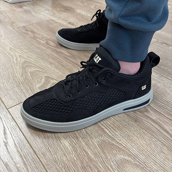 Артикул: 329 черМужские кроссовки Caterpillar сетка черного цвета из нубука со вставками кожи.