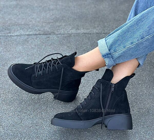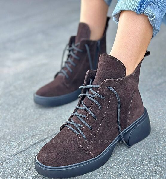 Подробное описание: 36-41 рр черевики на каблуці демі/зима натуральна замша/шкіра чорний, корич