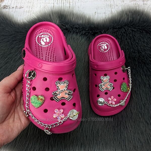 Подробное описание: Кроксы детские для девочки Fashion малиновые с джибитсами и цепочками 5786