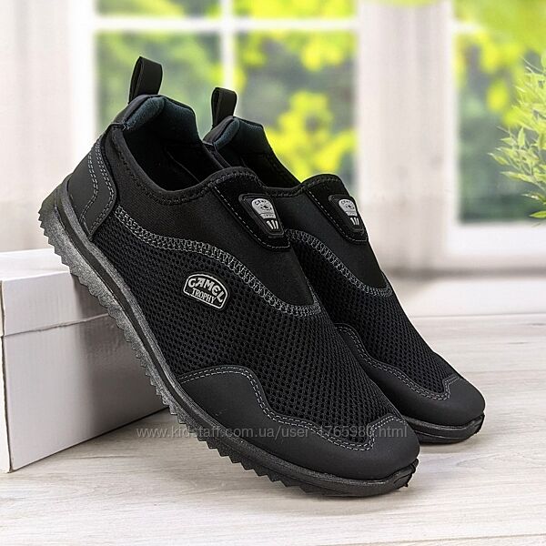 Мужские кроссовки мокасины, сетка, в черном цвете. Недорогие и качественные, от украинской фабрики Dago Style. Подошва ПВХ, эластичная и удобная. Верх из прочного текстиля (сетка), носок и пятка усилены. Сверху резинка, которая хорошо фиксирует ногу. Прекрасно подойдут, как недорогая повседневная и рабочая обувь. Изготовлены из качественных материалов. Весенне-летний вариант.Для выбора своего размера, смотрите размерную сетку на данную модель: