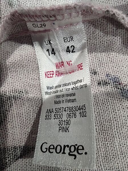 Очень красивое платье без рукавов фирмы George, состав: 55 % лён и 45% вискоза. Сток, в идеале, состояние нового.Размер UK 14, Euro 42. Внимательно смотрите замеры: