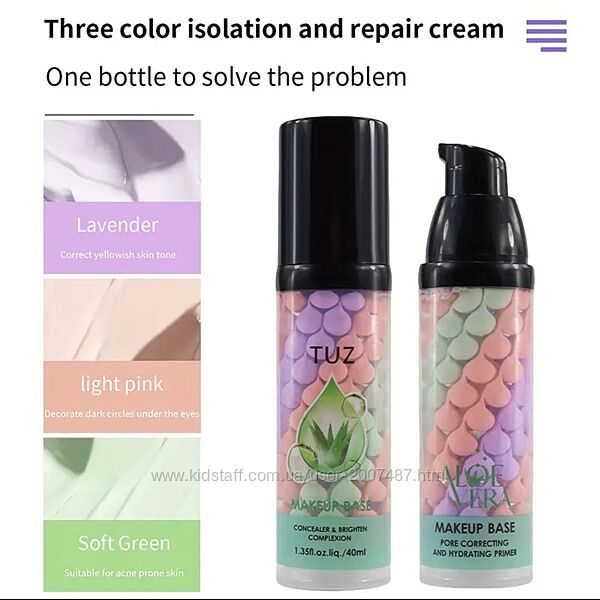 Подробное описание: Триколірна база під макіяж TUZ 40 мл Праймер для обличчя Основа під макіяж