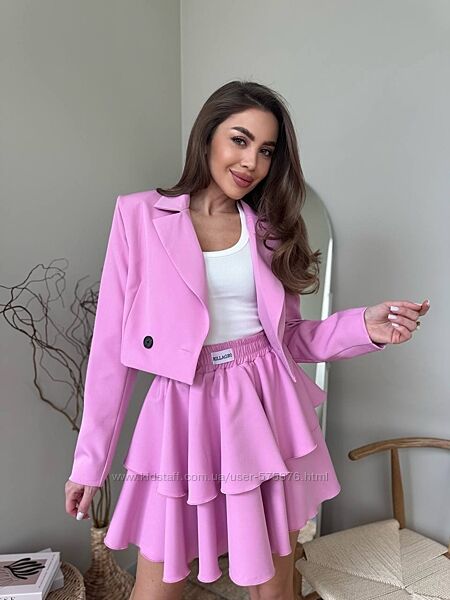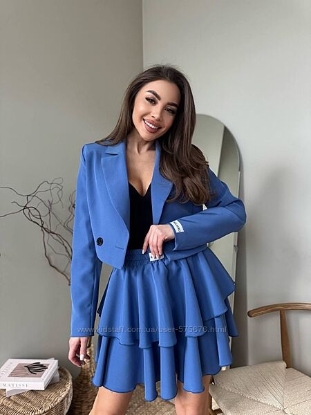 Подробное описание: S-M, L-XL костюм двійка укорочений жакет на підкладці та спідниця