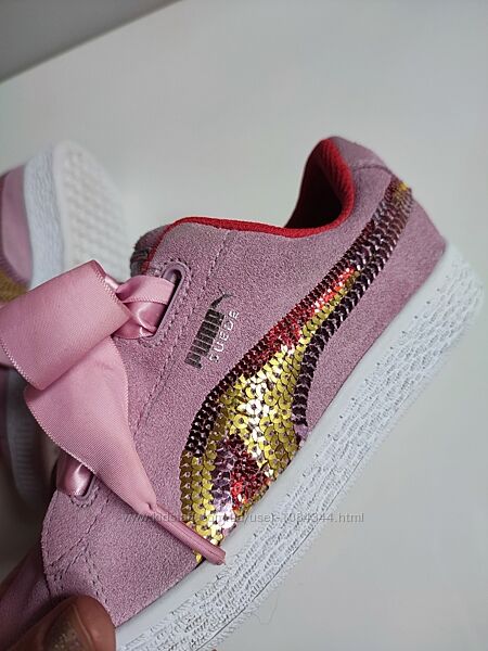 кожаные кроссовки мокасины с лентами Puma suede пайетки / 29р