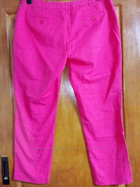 Літні бриджі. ПІТ 45 см, ПІС 59 см, довжина 92 см/ 68 см, посадка 26 см / 39 см. Натуральна тканина, дуєе трішки стрейчеві. Колір не виходить зробити, твкий, як є. Колір рожево кораловий.Будь ласка, заміри для вас.