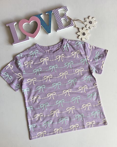 Футболка трикотажна , фіолетова з принтом- бантики від H&M РІСТ от 110-116 ( спина 42 ПОГ -32 см ) 122-128 ( спина-46 ПОГ -35 см ) 134-140 ( спина-50 ПОГ-37 см )СКЛАД - 100% бавовна ,
