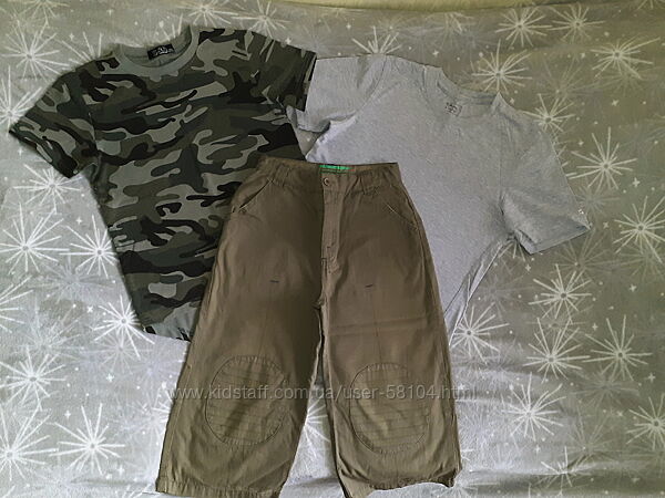 Для готового комплекта могу предложить футболки на р.140-146 - камуфляжной расцветки и светло-серую.