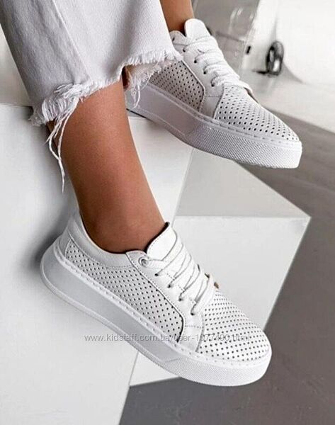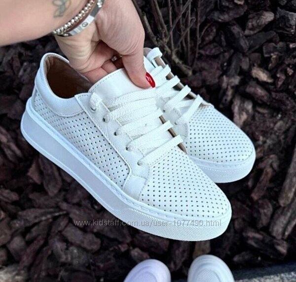 Подробное описание: Кросівки білі шкіряні перфоровані , летние кроссовки