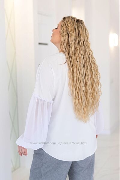 Подробное описание: р.48 до 62р. Жіноча блуза вільного крою софт та шифон