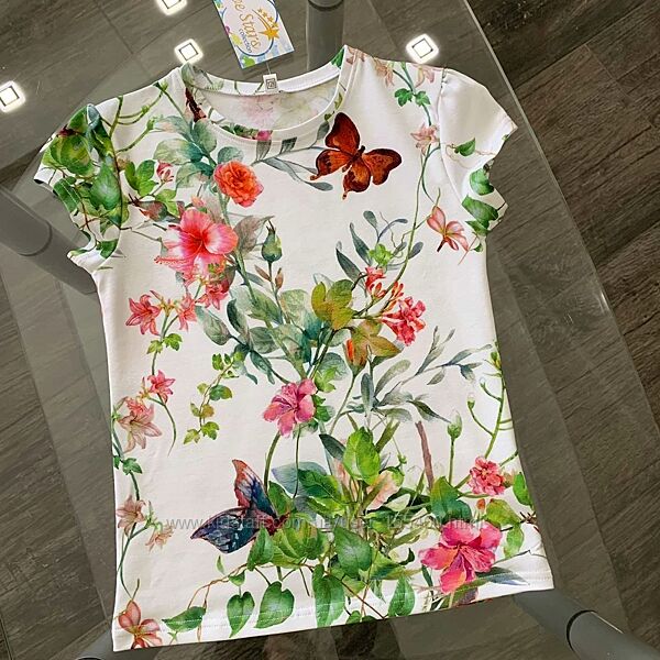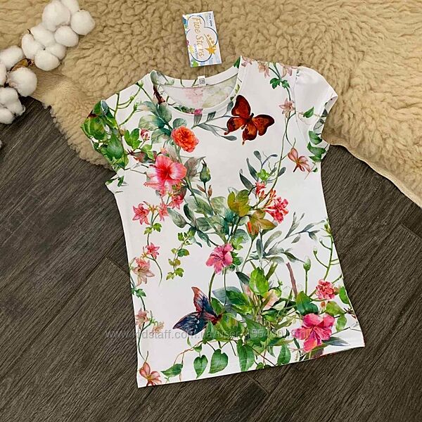 Подробное описание: Костюм для дівчинки футболка і шорти метелики в квітах Five Stars