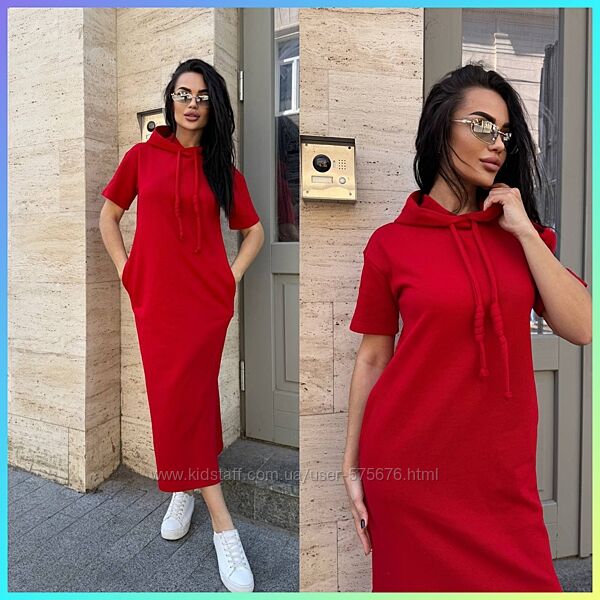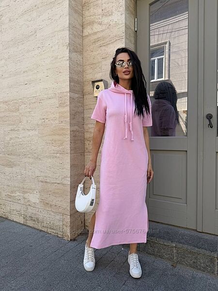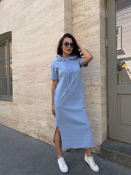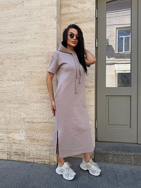 Подробное описание: S, M, L, XL Жіноча сукня-худі літня міді з розрізами лакоста бавовна