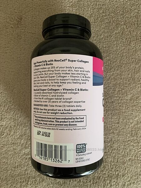 Супер колаген з вітаміном С та Біотином, 270 таблеток США.Колаген є основним структурним білком, що міститься в суглобах, кістках, шкірі, волоссі, нігтях та інших сполучних тканинах. Він відповідає за підтримання міцності, еластичності та гнучкості цих тканин в організмі.