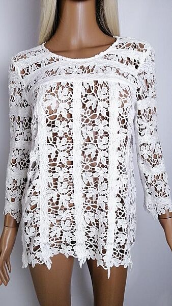 Біла мереживна блуза Massimo DuttiЙде на с-м