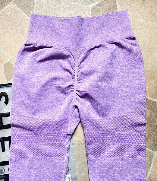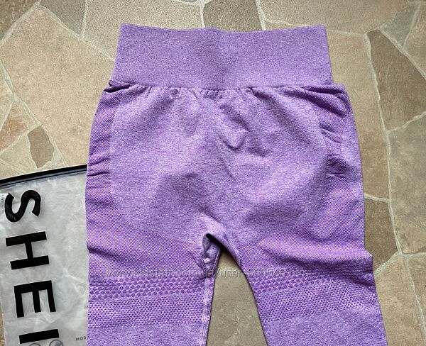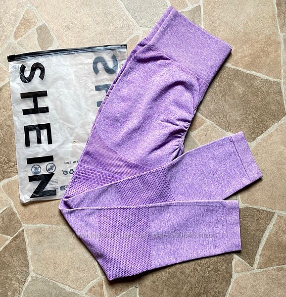 Відмінна якість! Зональні спортивні легінси з ефектом пуш-ап. Комфортна, стильна, еластична модель для спорту. Тканина щільна, приємна до тіла, м´яка, не просвічує. Склад: 54 % поліамід, 36% поліестер, 10% еластан. Широкий пояс, висока посадка. Безшовні. Вказано розмір М, дивіться виміри в спокійному стані: напівОТ 32, напівОБ 40, посадка близько 31, довжина 84, ширина пояса 8, ширина штанини зверху 18, внизу 10 см. Колір красивий бузковий. Дефектів немає. Увага! Усі речі Shein приходять без паперових бірок. Є лише пакувальні пакети із логотипом. Це абсолютно нові реч