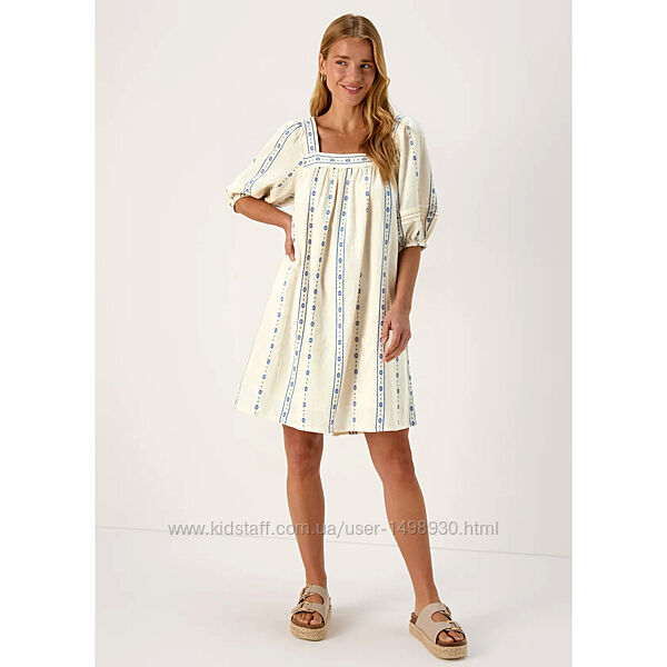Подробное описание: Кремова вишита сукня з пишними рукавами, бавовна р.14