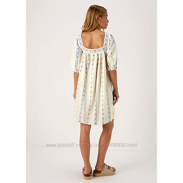 Кремова вишита сукня з пишними рукавами, бавовна р.14