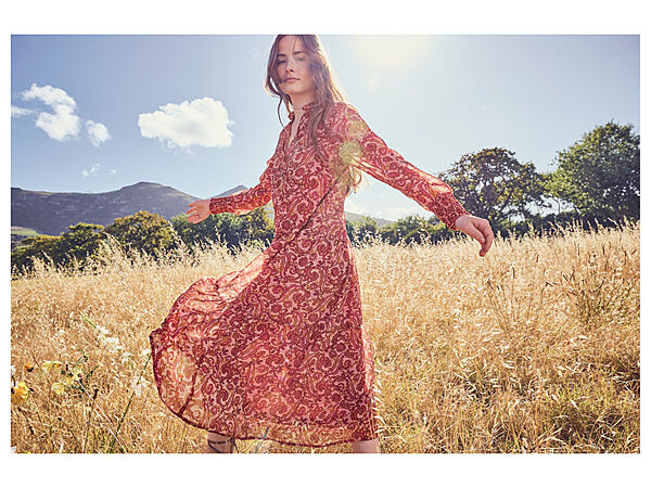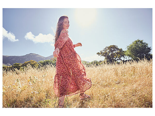 Жіноча сукня від бренду ESMARA®. З легкого літнього шифону. V-подібний виріз з рюшами та поясом-зав´язкою. Злегка прозорі рукави із зібраним низом. Модні рюші на спідниці. Довжина міді. На підкладці.Заміри: надаємо по запиту