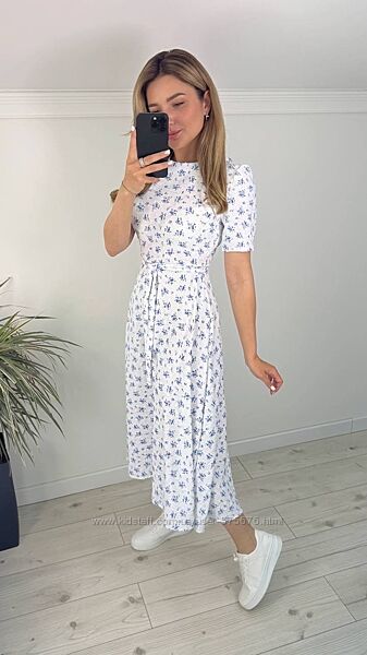 Подробное описание: 42-44, 46-48, 50-52 Жіноча сукня міді креп жатка літня з квітковим принтом