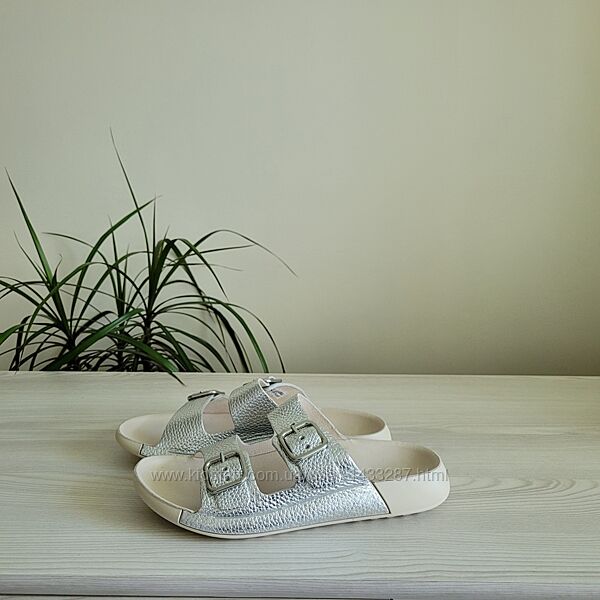Верх шкіряний сріблястого кольору Устілка анатомічна, шкіряна. Підошва гнучка. Фіксуються на 2 замочки для відрегулювання підйому та ширини. Виробник Індонезія.