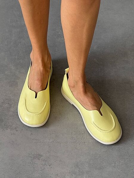 М´які балетки barefoot, натуральна шкіра, ніжно - жовті. Устілка: шкірпідклад. Мають носик анатомічної форми стопи людини. Підошва: позаду 1,5 см. Виробництво - Україна. Розмір в розмір.