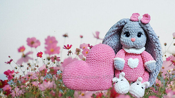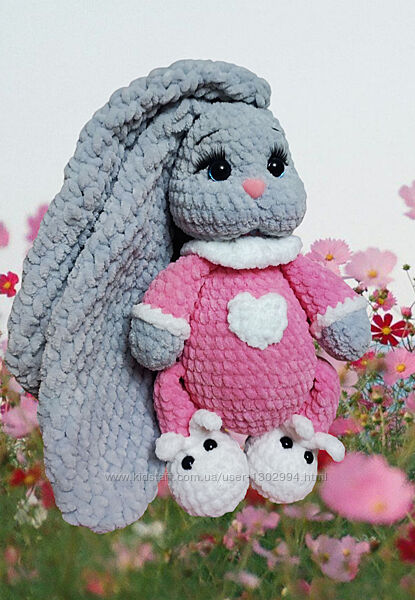 Подробное описание: Плюшева зайка, вязана зайка, зайчик амігурумі, зайка з довгими вушками