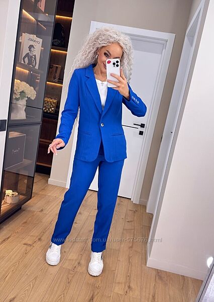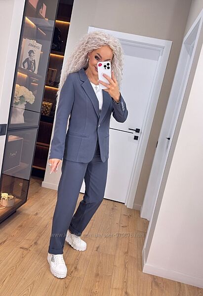 Костюм з піджаком НА ПІДКЛАДЦІ та класичними брюками.Піджак прямого крою з легким акцентом на талію, з якісним підкладом в колір піджака, бічними кишенями, двобортний, відмінно комбінується з різними фасонами штанів.