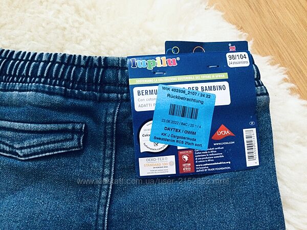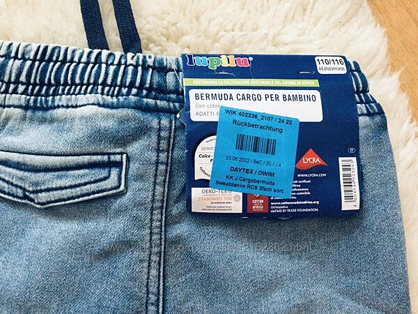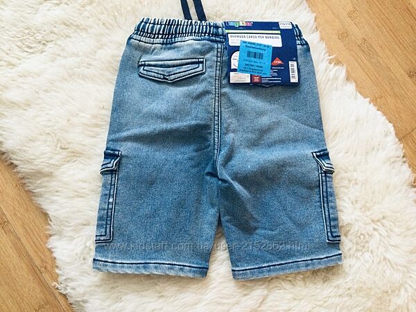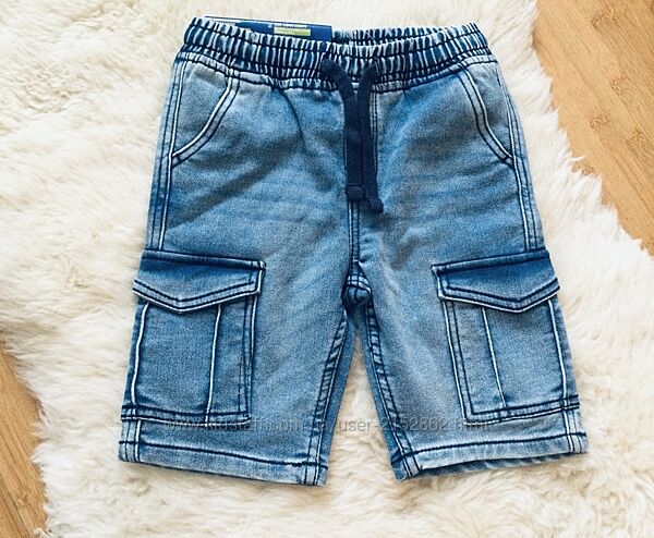 Нові шорти-карго для хлопчика Lupilu. З боковими функціональними карманами, в поясі стягуються куліскою. Тканина - мʼякий приємний джинс (75 % котон).Розміри: 98-104 см. і 110-116