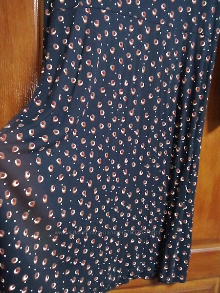 Гарне плаття, натуральна тканина, дуже приємна до тіла, віскоза, тягнеться. Плече 7,5 см, рукав 65 см, ПІГ 52 см--тягн. +15 см, талія 48 см-- + тягнеться до 64 см, ПІС 62 см, довжина 115 см. Підійде на різні розміри. Стан нового.Будь ласка, заміри для вас.