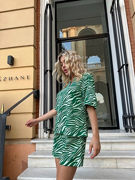 Подробное описание: 42-44, 46-48, 50-52 літній костюм вільного крою з шортами зара принт
