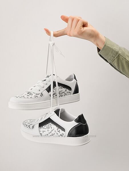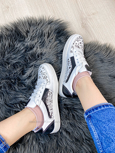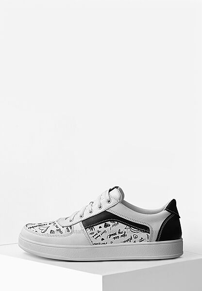 Подробное описание: Кроссовки кожаные женские принт рисунок белые стильные v7-em-084