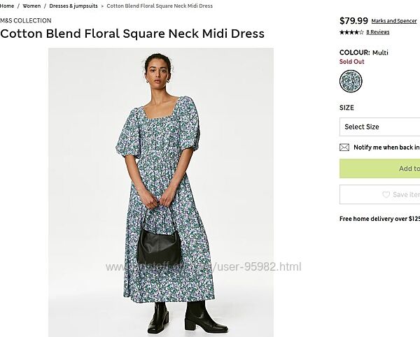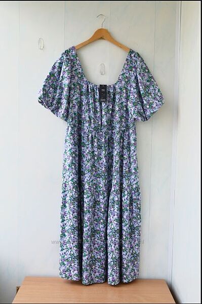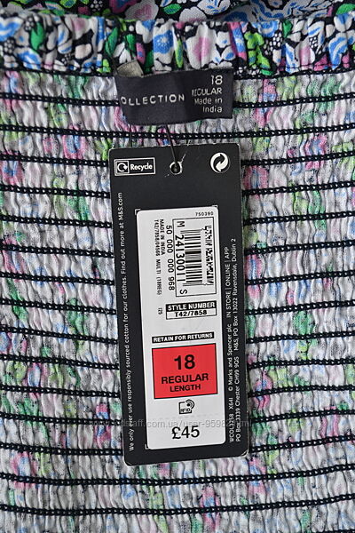 Сукня міді у кольорах Marks & Spencer, дуже красиве, стильне, не прозоре. Річ універсальна, і в гості, і на роботу, і прогулятися вприємній компанії. На бирці розмір 18. Склад тканини — 44% котон 42%