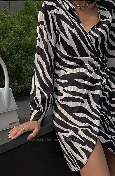 Сукня на запах від Zara з тваринним принтом під зебру. Трендовий принт сезону. Розмір XL, чудово на M та L. Можна одягати як подовжену блузу. Стан нової.Заміри: