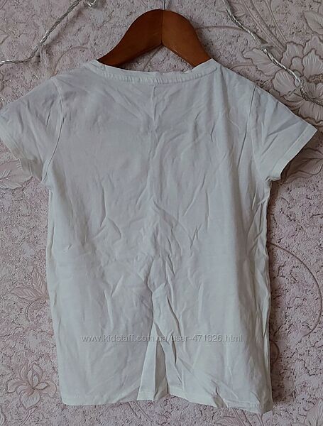 Продам молочну однотонну футболку з коротким рукавом для дівчинки Резерв в ідеальному стані.Розмір 140.