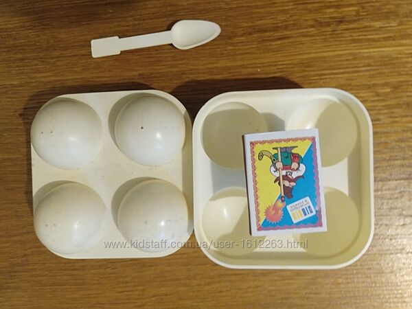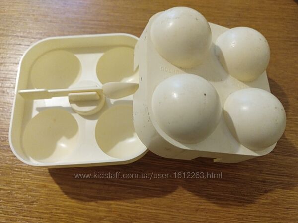 Продам лоток для яиц пластик на 4 шт, закрывается,плюс ложечка, удобно в дорогу.Есть надпись для пищевых продуктов.