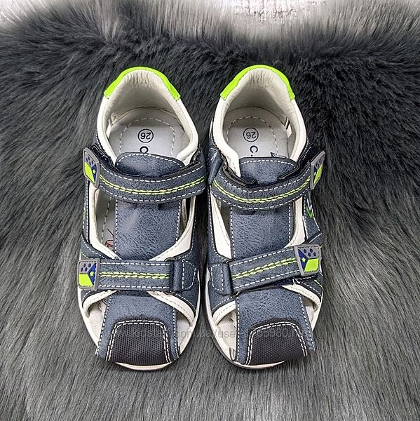 Босоножки, сандалии, для мальчика с закрытым носком и высокой пяткой. За счет высокой пятки и липучек, ножка ребенка надежно фиксируется в обуви.Верх - эко-кожаСтелька - кожа, есть супинатор.Полнота регулируется двумя липучкамиДля выбора своего размера, смотрите размерную сетку на данную модель: