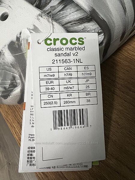 Подробное описание: Шльопанці Мраморні Слайди Classic Crocs Marbled Sandal, розмір M7/w9